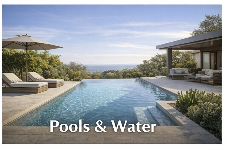 When planned carefully, outdoor elements also affect the wider performance of the property. Shade structures, vegetation and water features can help moderate temperatures around the home while improving the connection between indoor living spaces and the surrounding environment.