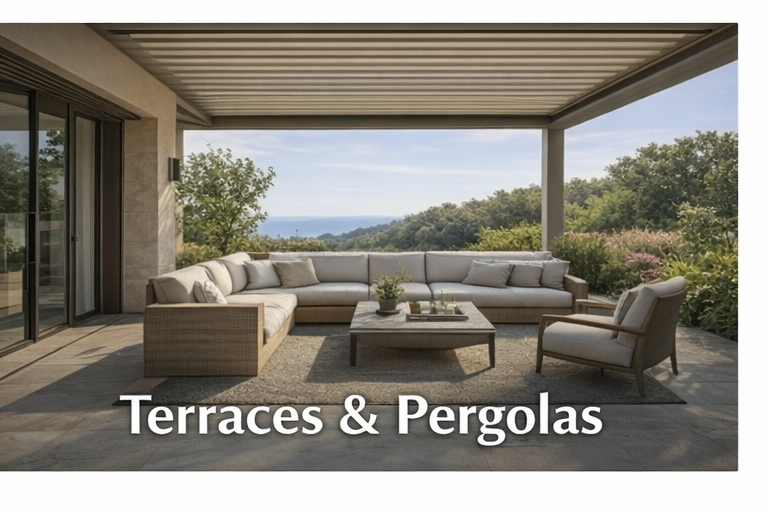 Outdoor infrastructure plays an important role in how Mediterranean homes are used day to day. Terraces, pergolas, pools and outdoor kitchens extend living areas beyond the interior of the property, creating spaces designed for relaxation, dining and social gatherings.